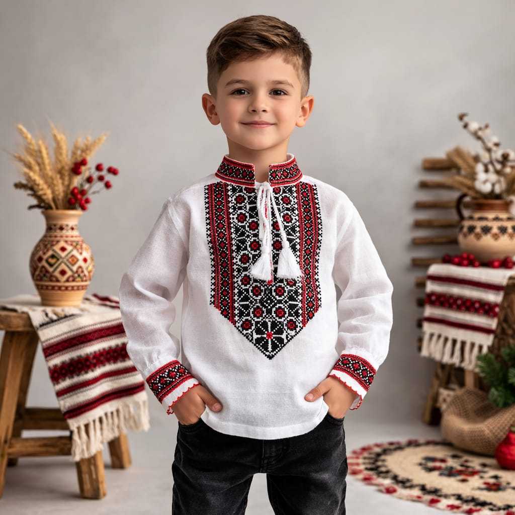 8 – pentru 6-8 ani, circumferinta bust 68 cm, lungime 44 cm, maneca 36 cm