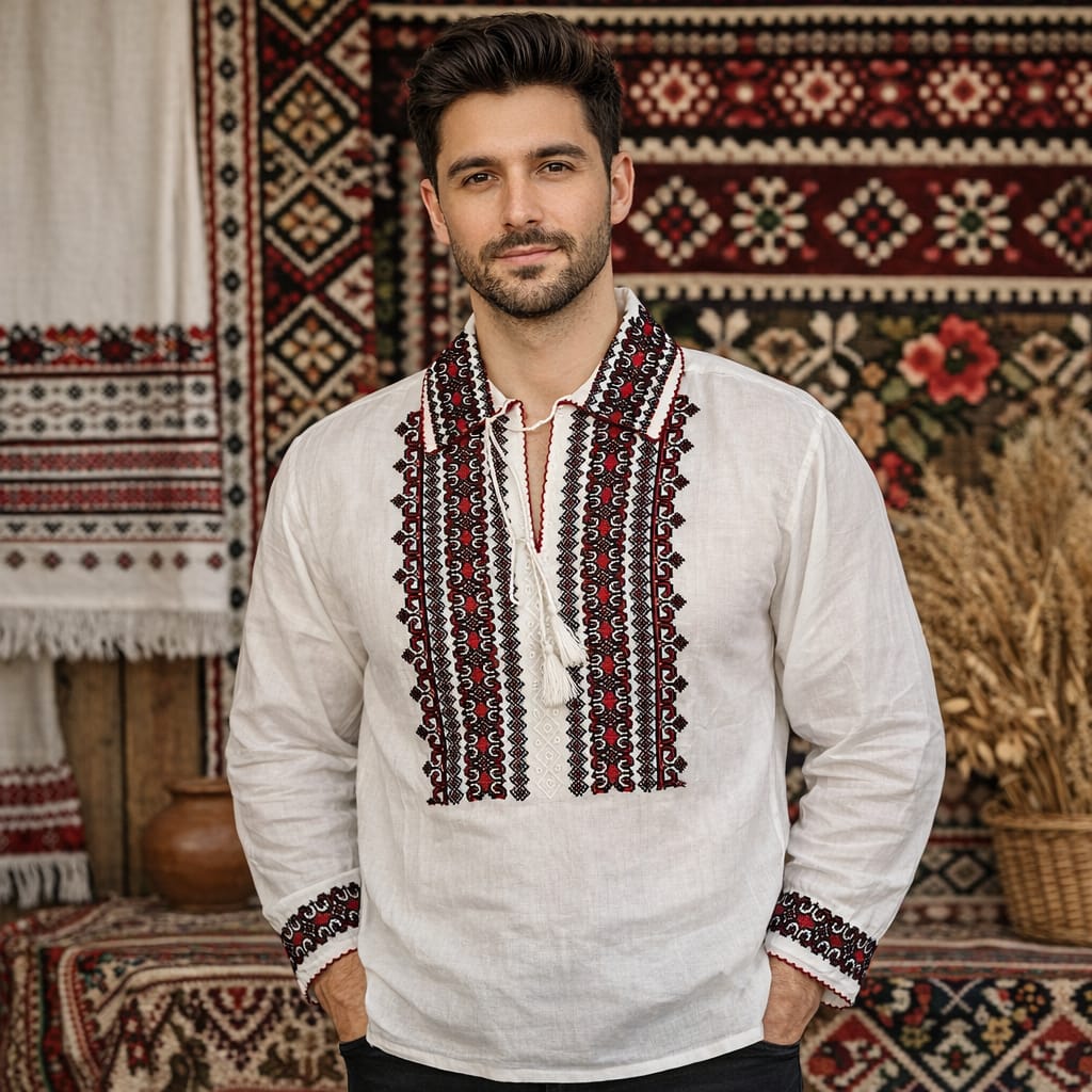 Material panza de bumbac, broderie cusuta la masina