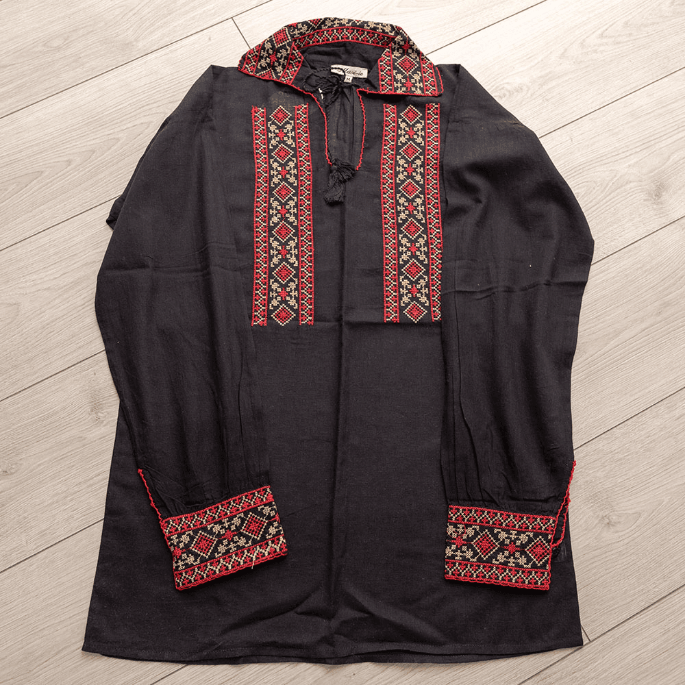 Material panza de bumbac, broderie cusuta la masina.