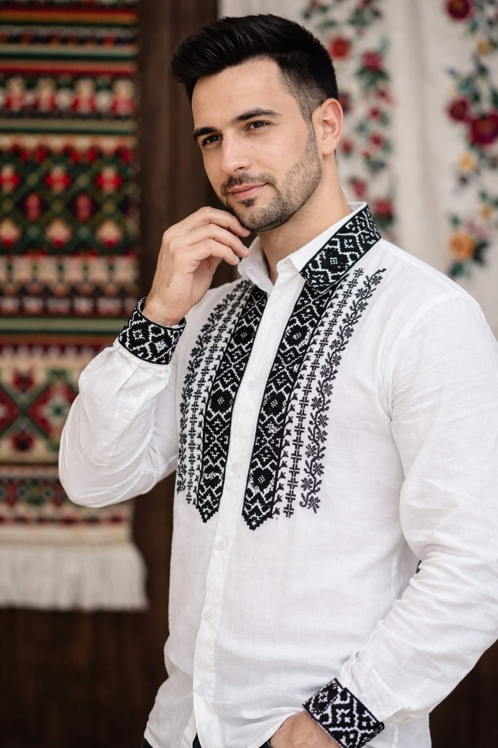 Material panza de bumbac, broderie cusuta la masina.