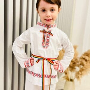 Înapoi la magazinCostumașele populare pentru băieței sunt adesea inspirate din portul tradițional românesc, adaptate pentru copii. Acestea sunt confecționate din materiale ușoare, confortabile, și au detalii autentice care reflectă tradițiile fiecărei zone din România.Astfel de costumașe sunt ideale pentru a transmite iubirea față de tradițiile românești și a face băiețeii să se simtă speciali în evenimente importante!Ocazii potrivite pentru a purta un costumaș popular: 1. Evenimente tradiționale: Festivaluri folclorice, târguri și parade tradiționale. 2. Sărbători religioase: Paște, Crăciun, Sfântul Andrei, alte slujbe importante. 3. Serbări școlare: În cadrul programelor culturale sau tematice. 4. Fotografii speciale: Ședințe foto cu tematică tradițională. 5. Nunți și botezuri: Dacă sunt în stil tradițional sau la chemarea nașilor.