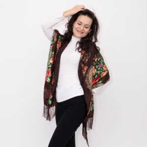 Acesta este un șal tradițional cu un design floral bogat cu detalii decorative complexe. Marginea este decorată cu franjuri ,ceea ce îi conferă un aspect elegant și sofisticat.