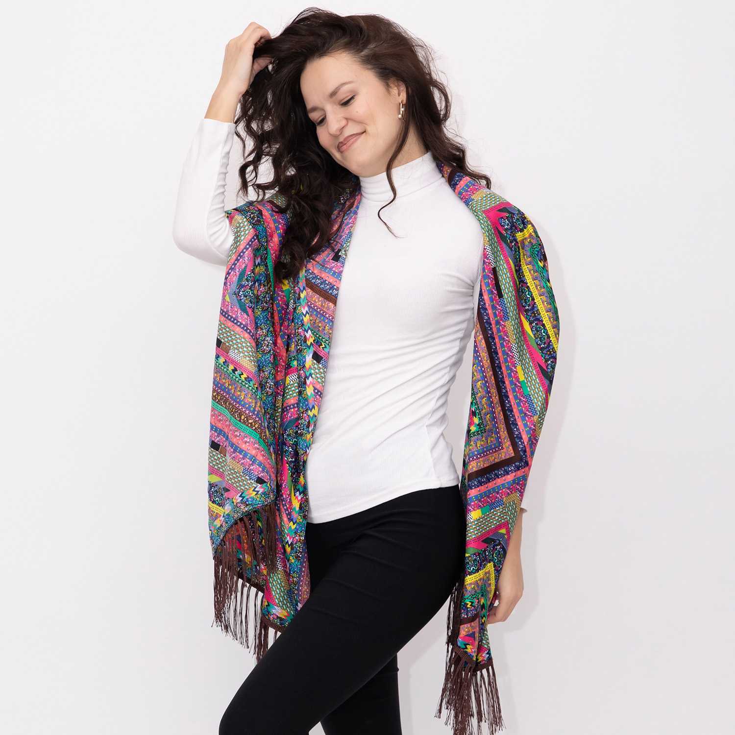 Este un șal versatil, cu o estetică clasică și rafinată, perfect atât pentru ocazii speciale, cât și pentru purtare zilnică.