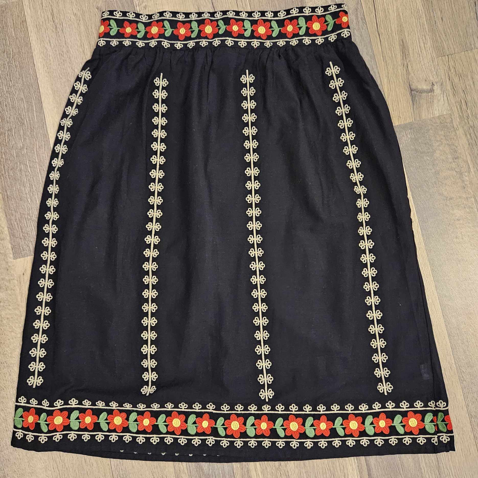 Bordura de jos se afla si in partea din spate a rochiei, modelul din talie si liniile verticale doar in fata
