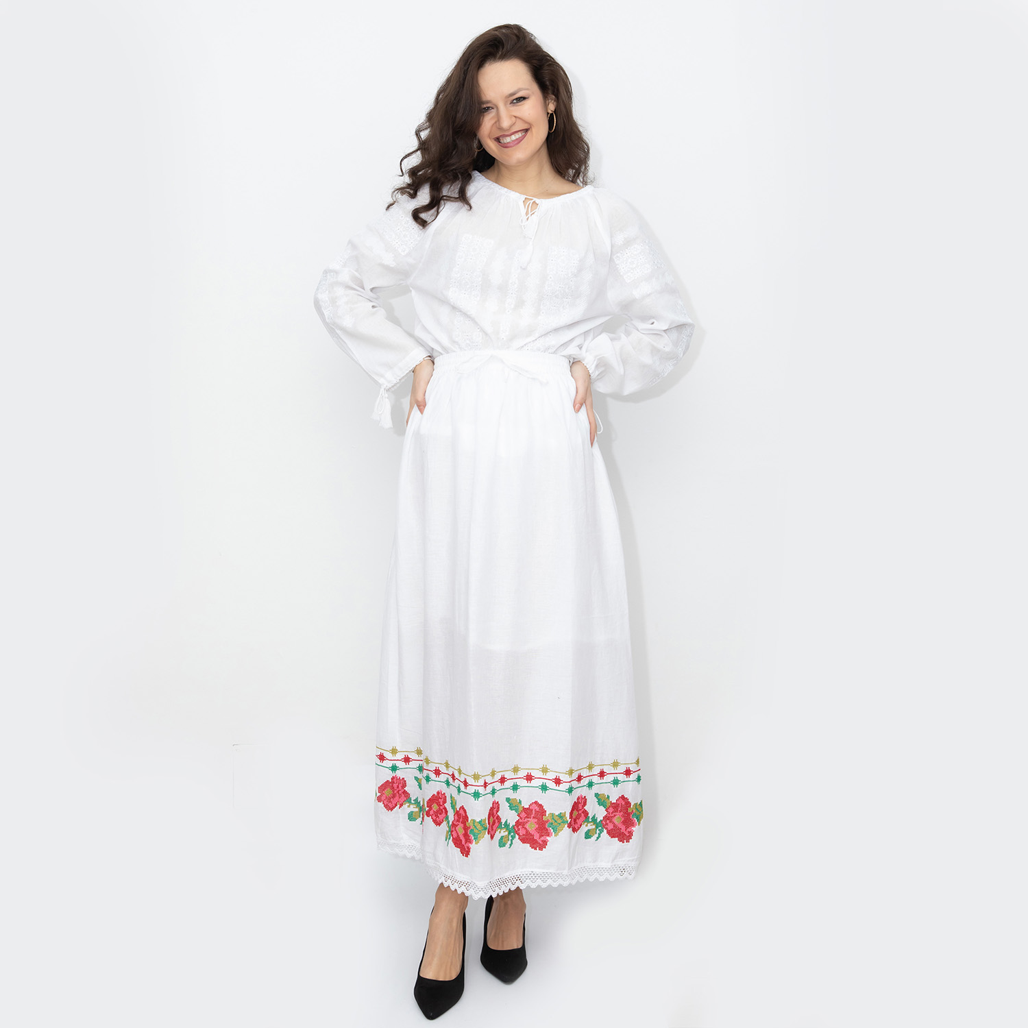 Material: panza de Bumbac, jupa pe dedesubt, la poale are aplicata dantela alba