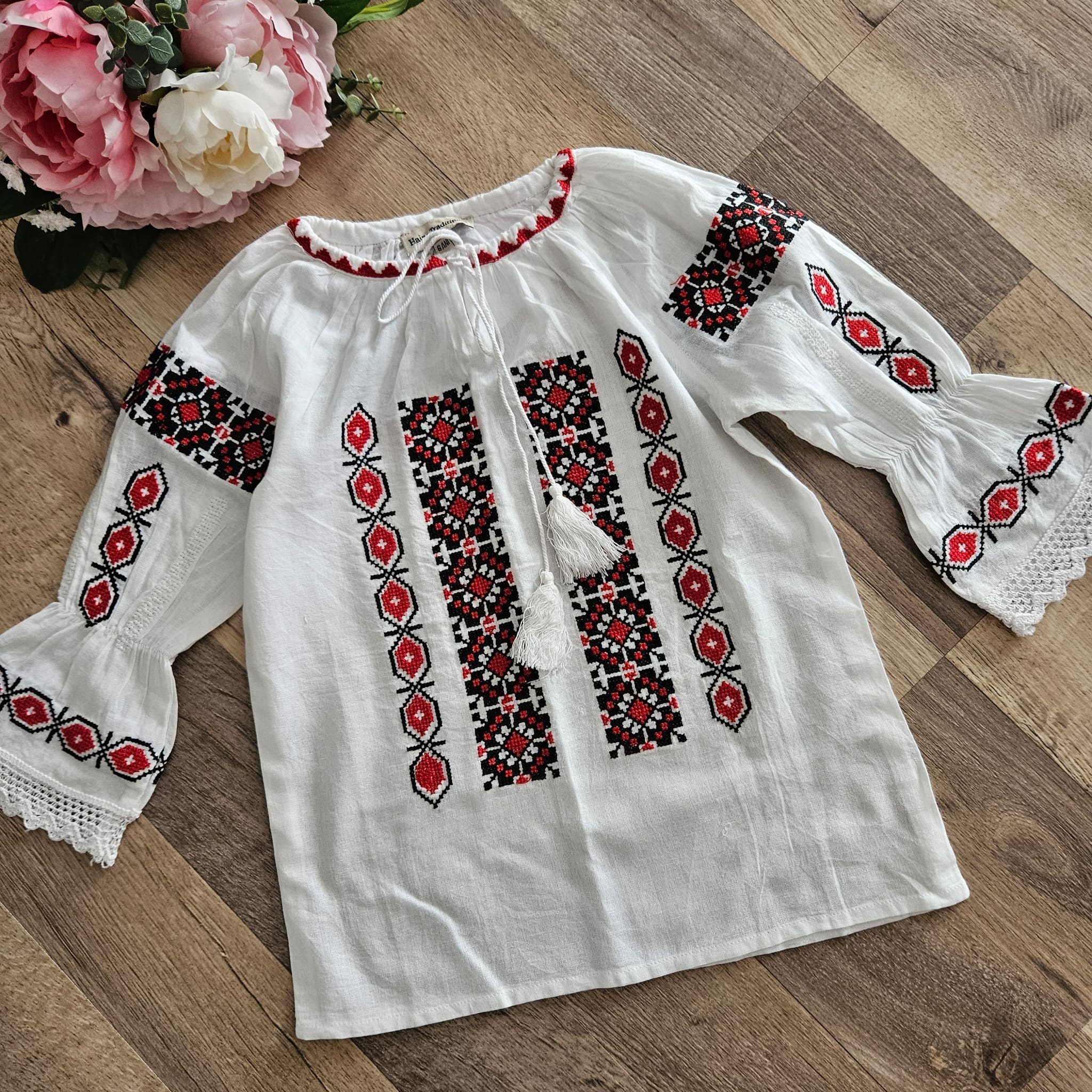 12 – pentru 10-12 ani, circumferinta bust 72 cm, lungime 45 cm, maneca 37 cm
