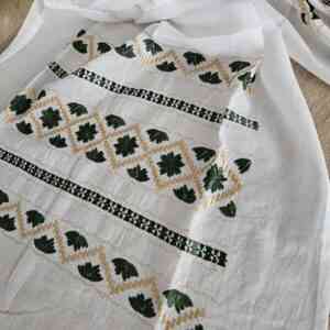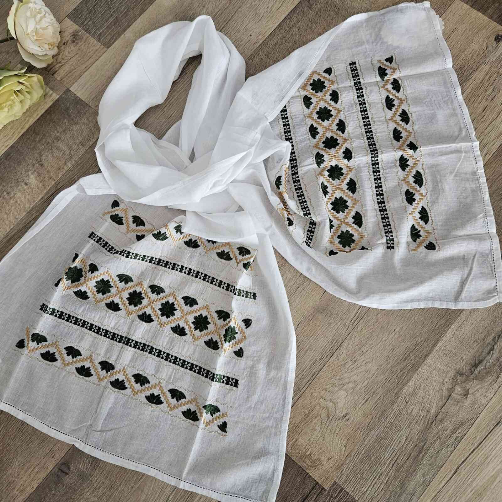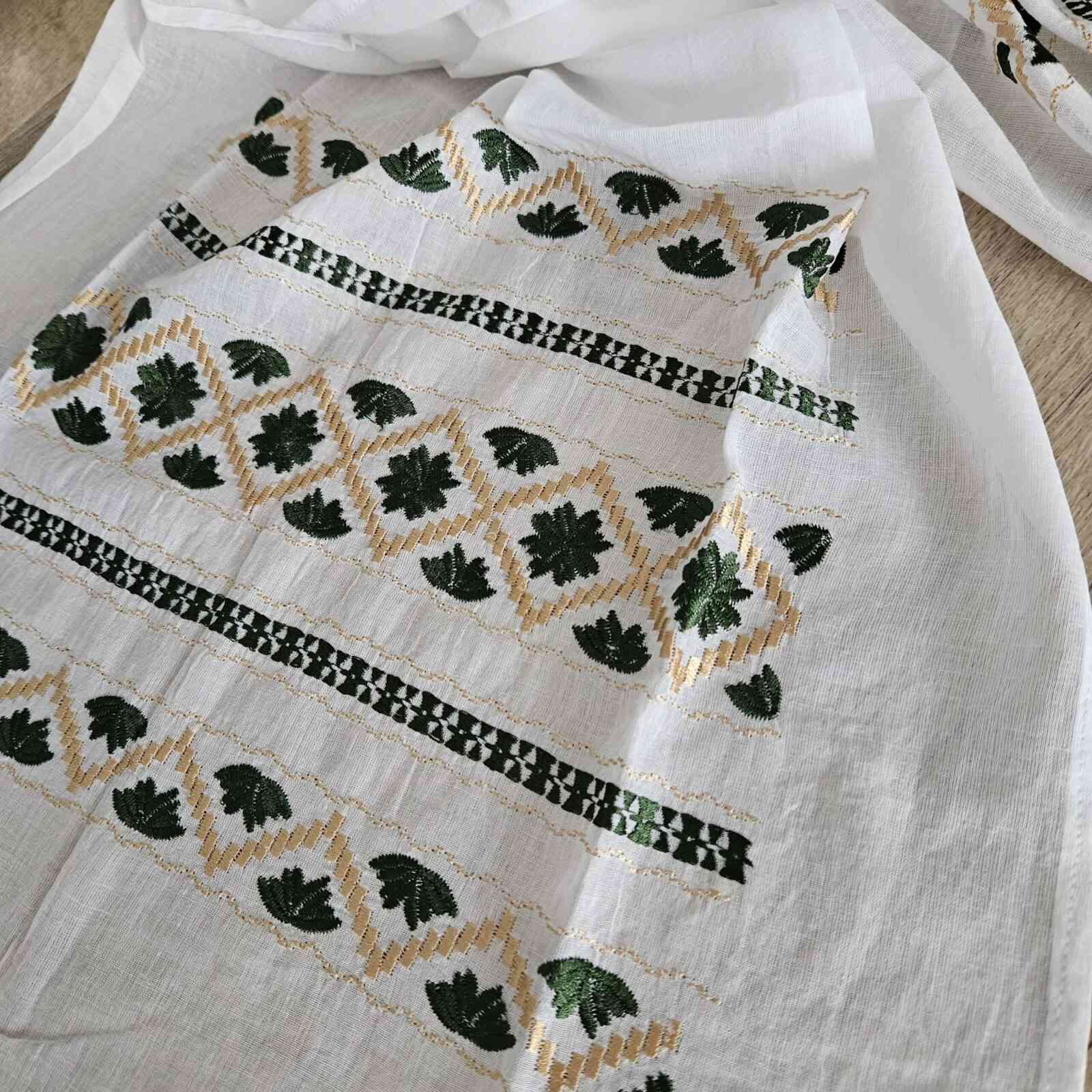 Culoare: fond alb cu broderie bej si verde