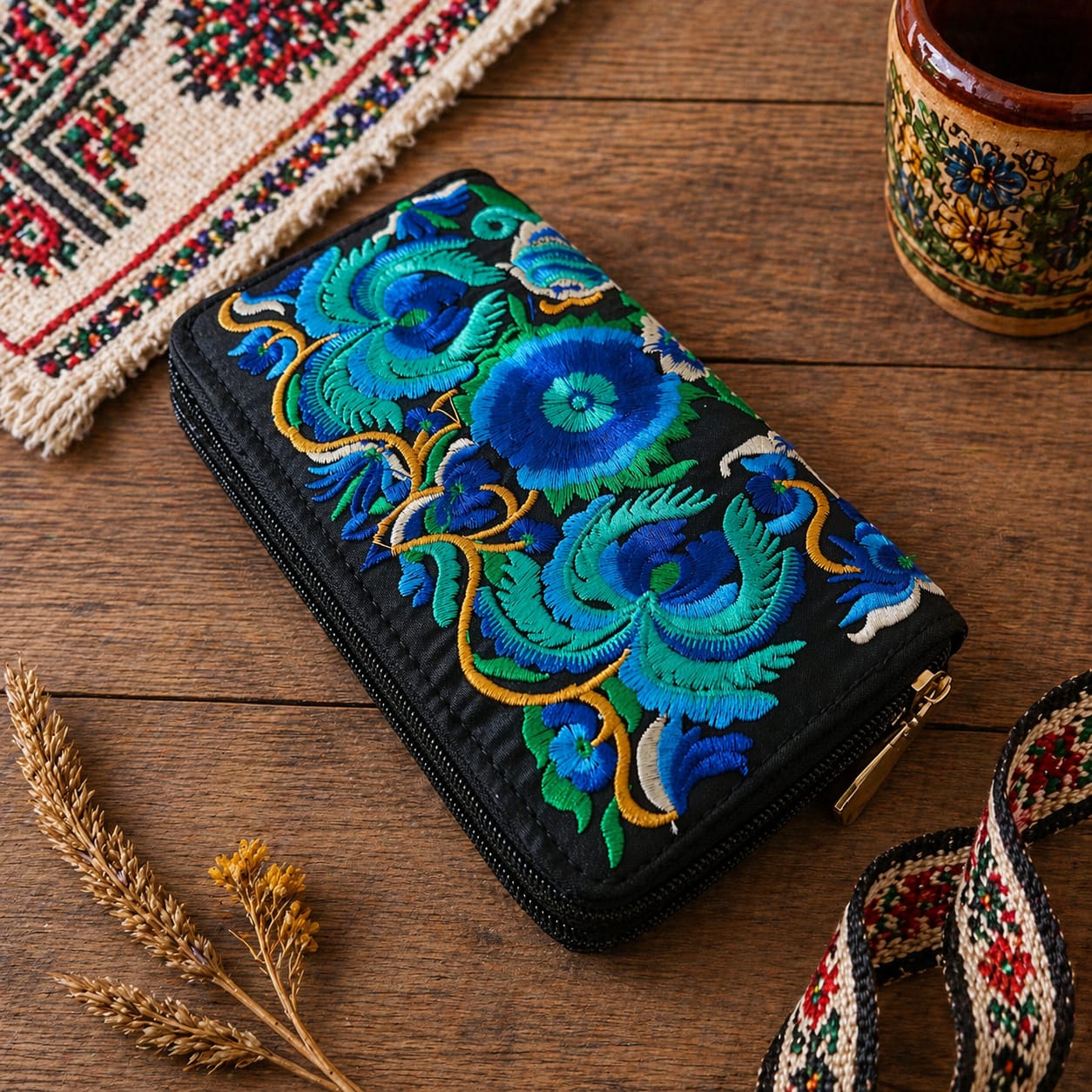 Interiorul este captusit si compartimentat pentru depozitare de bani, card, permis conducere,
