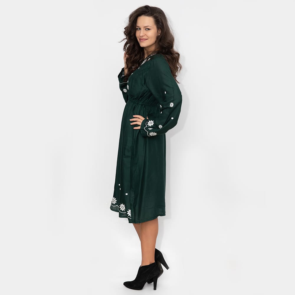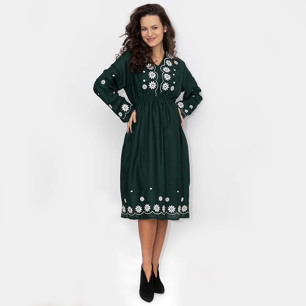 Broderie cusuta la masina doar in partea din fata a rochiei,dublura pe dedesubt