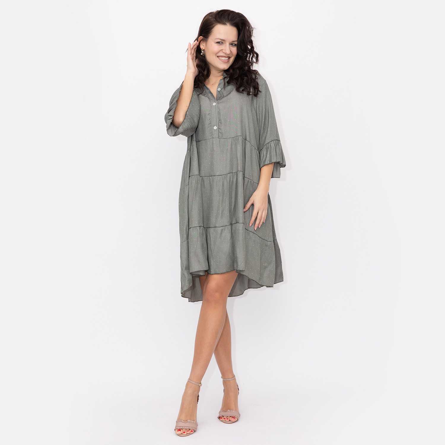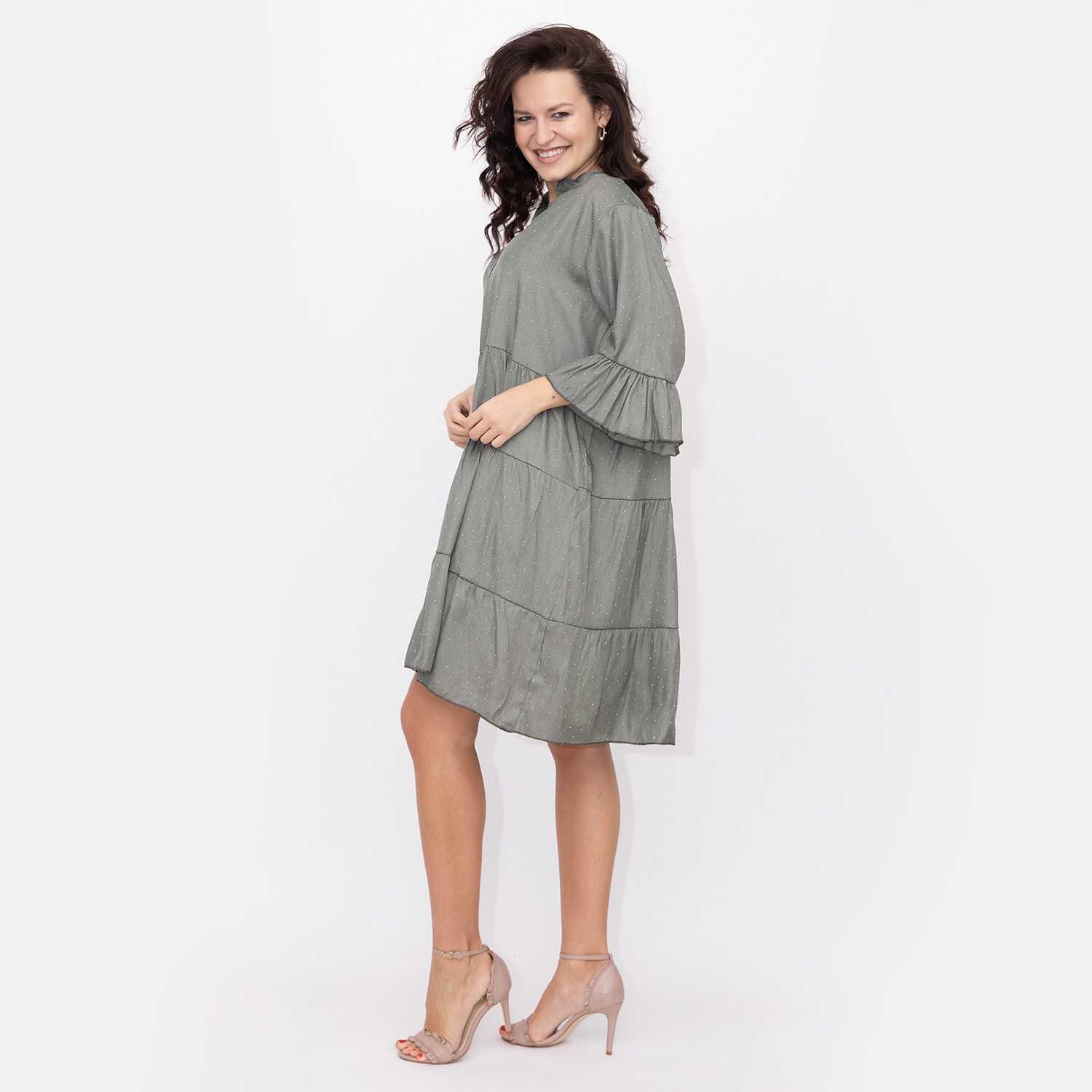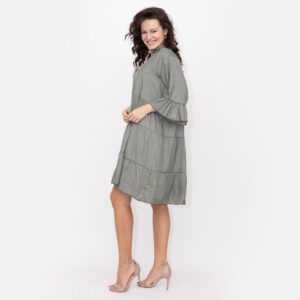 Aceasta rochie are un design modern si feminin, fiind potrivita pentru diverse ocazii datorita croiului sau versatil. Rochia este cu un croi lejer si evazat potrivit pentru orice tip de silueta.