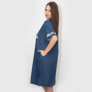 Broderie cusuta la masina doar in partea din fata a rochiei