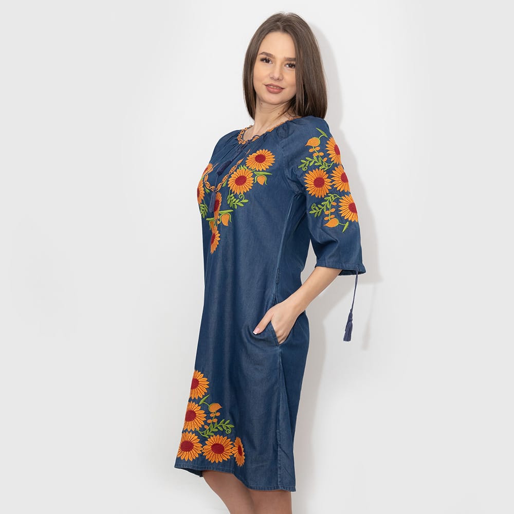 Broderie cusuta la masina doar in partea din fata a rochiei