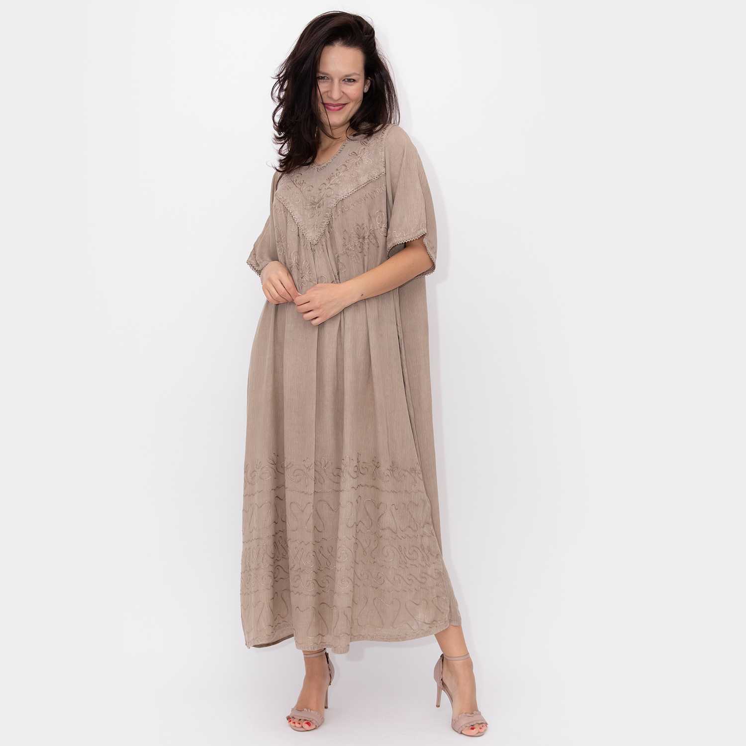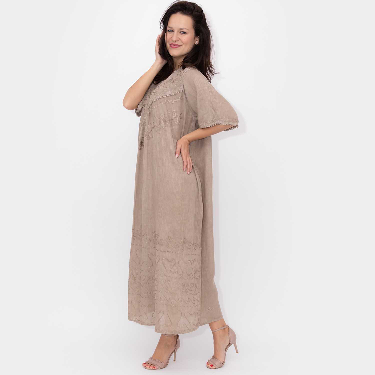 Material vascoza cu model imprimat.Este un material vaporos, usor de spalat si calcat, ideal pentru vremea calduraosa de vara. Croiul lejer ofera un confort pe toata durata purtarii rochiei.