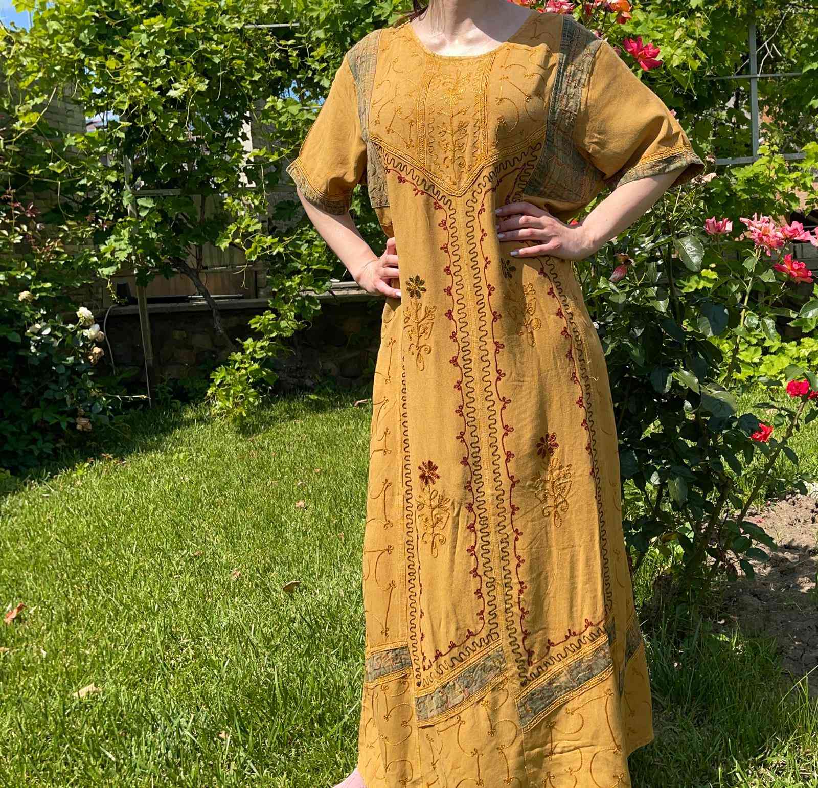 Rochie cu influente traditionale, eleganta si confortabila, potrivita pentru ocazii variate, de la evenimente casual la sarbatori cu aer etnic sau cultural.