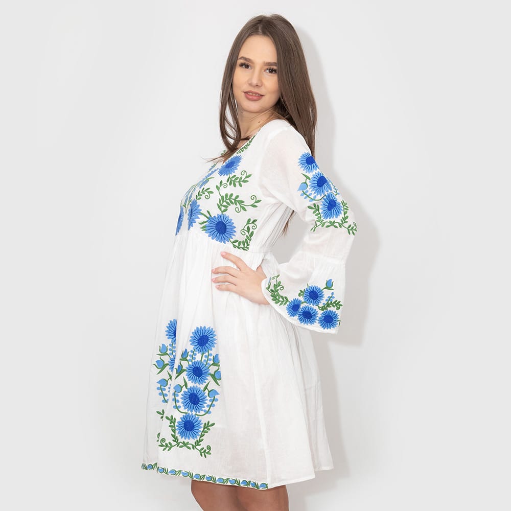 Broderie cusuta la masina doar pe partea din fata a rochiei