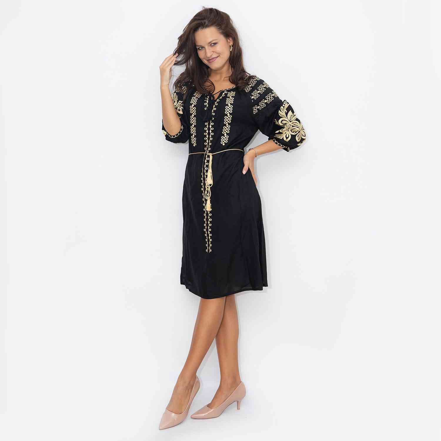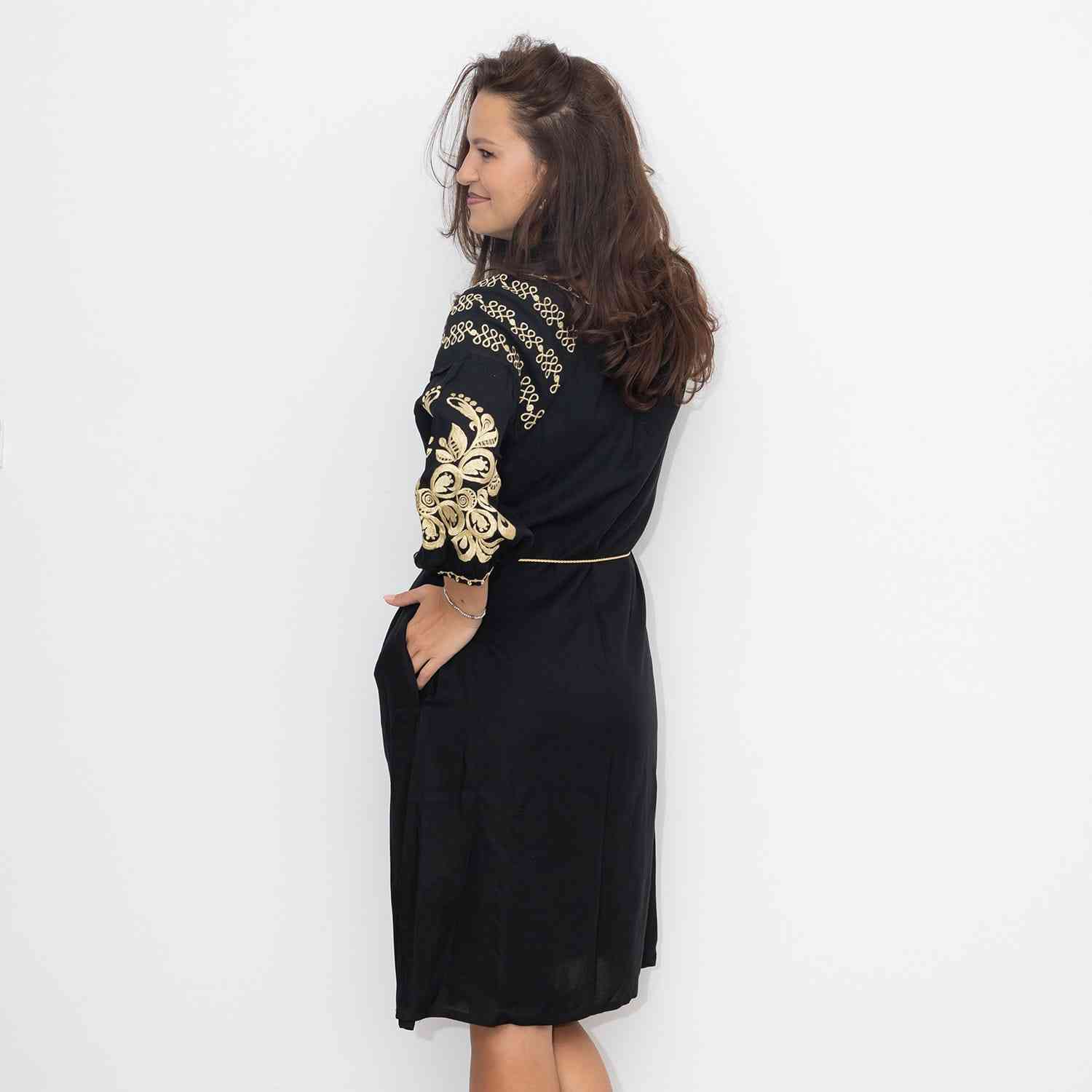 Broderie cusuta la masina doar in partea din fata a rochiei