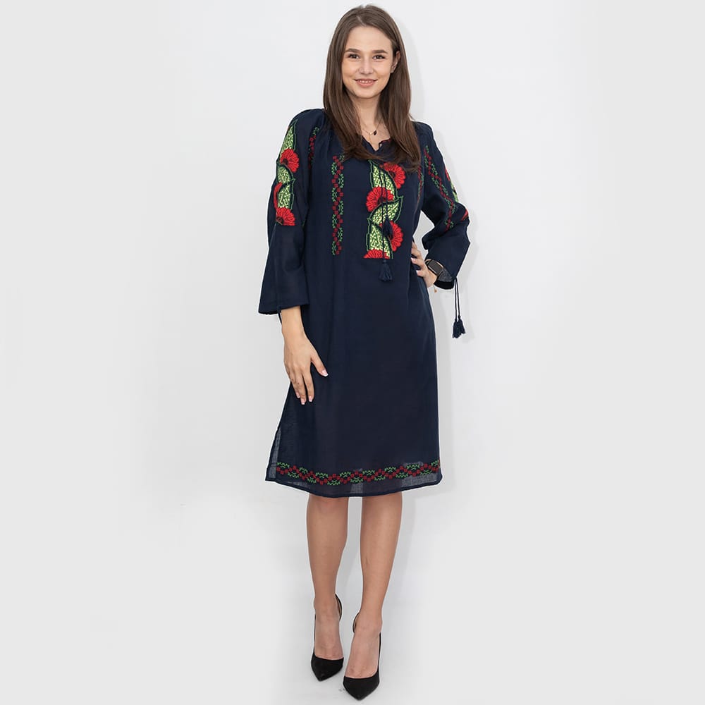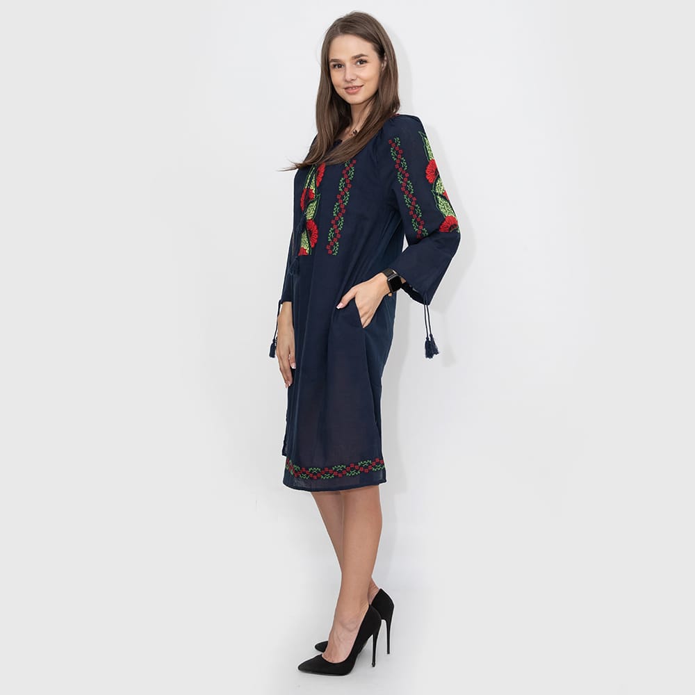 Broderie cusuta la masina doar pe partea din fata a rochiei