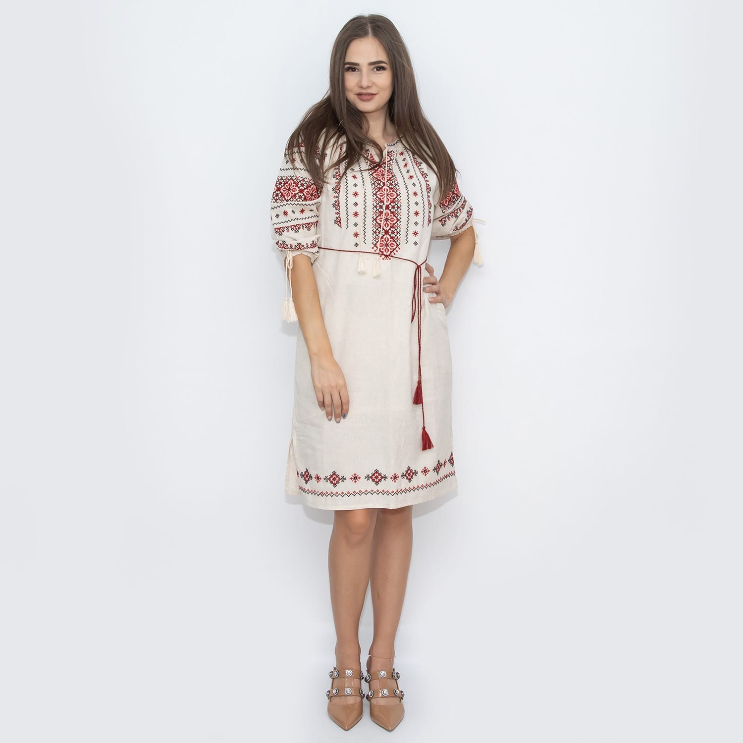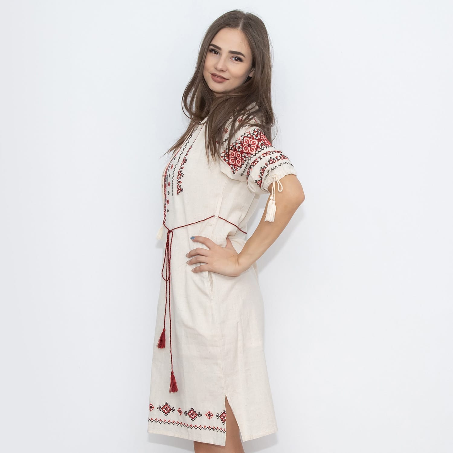 Rochia are dublura pe dedesubt si este prevazuta cu buzunare.