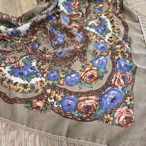Acest șal elegant din vascoza fina impresionează prin designul său bogat, decorat cu motive florale vibrante și detalii paisley, pe un fundal sofisticat. Marginea este finisată cu franjuri, oferindu-i un aer clasic și rafinat.
