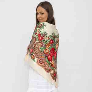 Acest șal elegant din vascoza fina impresionează prin designul său bogat, decorat cu motive florale vibrante și detalii paisley, pe un fundal sofisticat. Marginea este finisată cu franjuri, oferindu-i un aer clasic și rafinat.