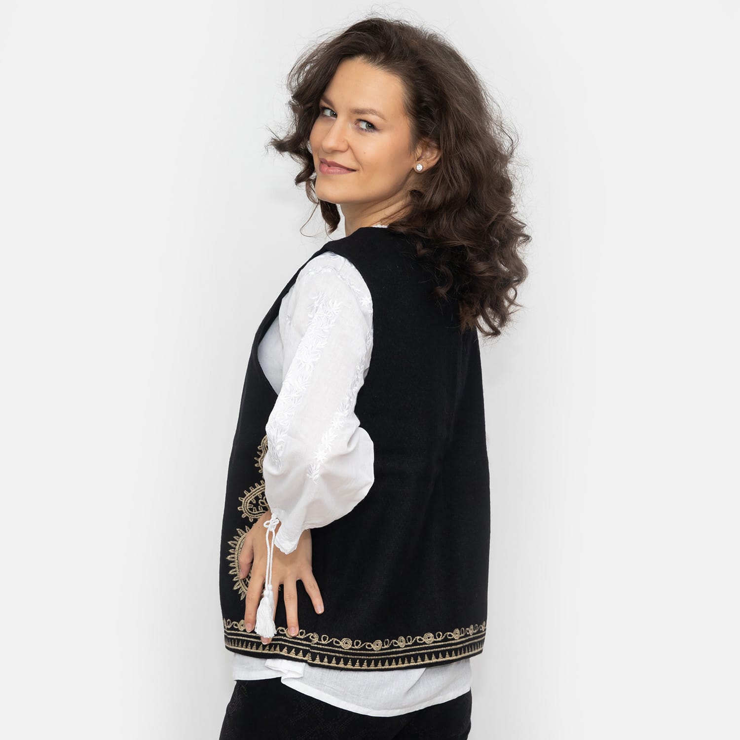L – 110 cm circumferinta bustului, lungime 57 cm,